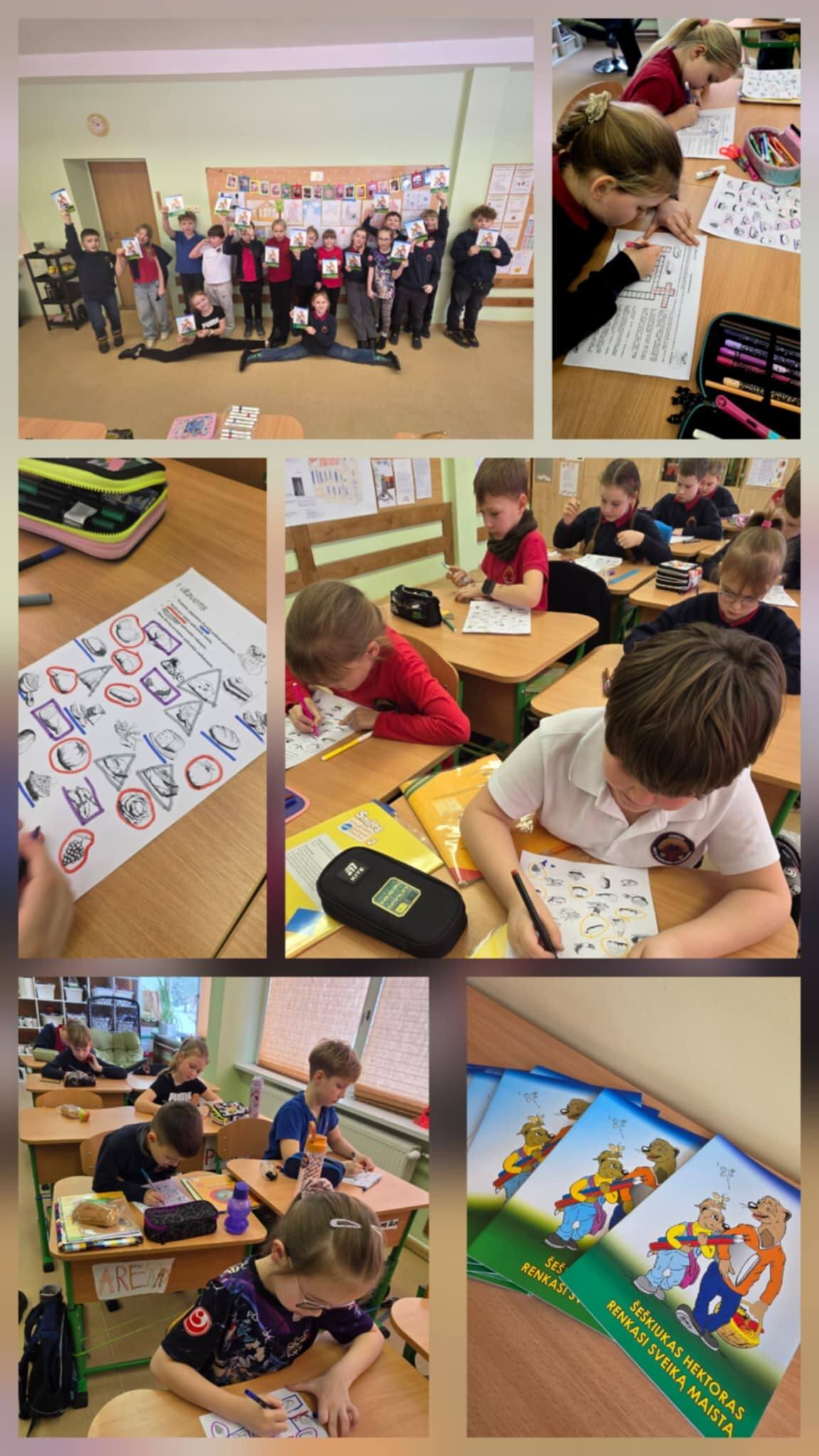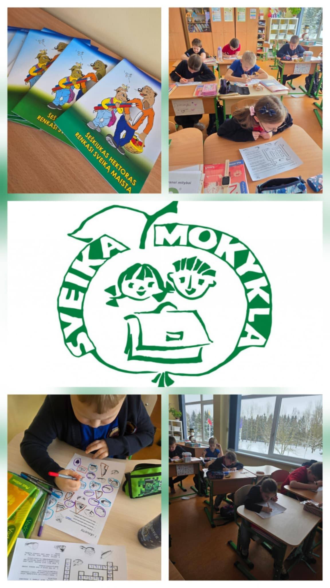 Vasario 5, 6, 10 dienomis, 2a, 2b ir 2c klasių mokiniams vyko užsiėmimai apie mitybą „Šeškiukas Hektoras renkasi sveiką maistą“. Aiškindamiesi maisto grupes, pasinaudojome plakatu ,,Maisto pasirinkimo piramidė“, kuri parodo kokius maisto produktus rekomenduojama vartoti kasdien, kokius maisto produktus rekomenduojama vartoti rečiau ir saikingai bei kokius – retai ir mažai, kad mityba būtų tinkama ir sveika.