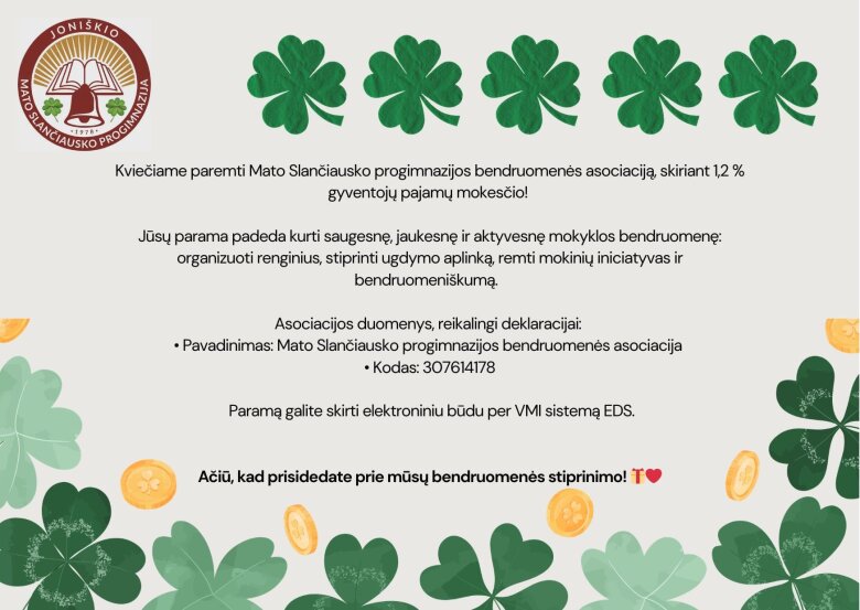 1.2% Mato Slančiausko progimnazijos bendruomenės asociacijai