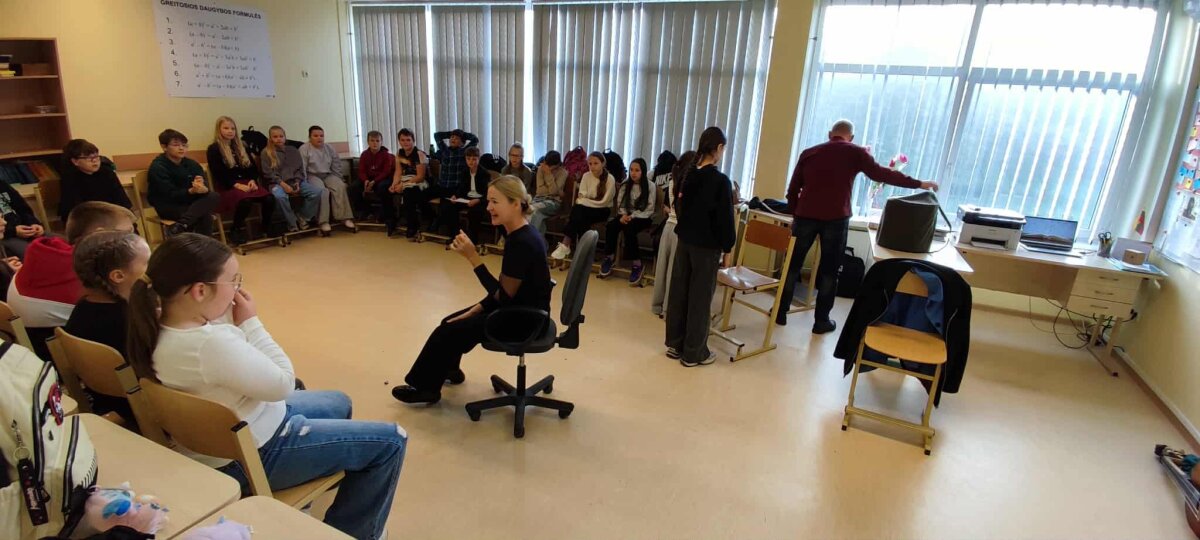 - „Teatro akimirkos“ – trumpų etiudų kūrimas ir vaidinimas, naudojant emocijas, judesį ir improvizaciją.