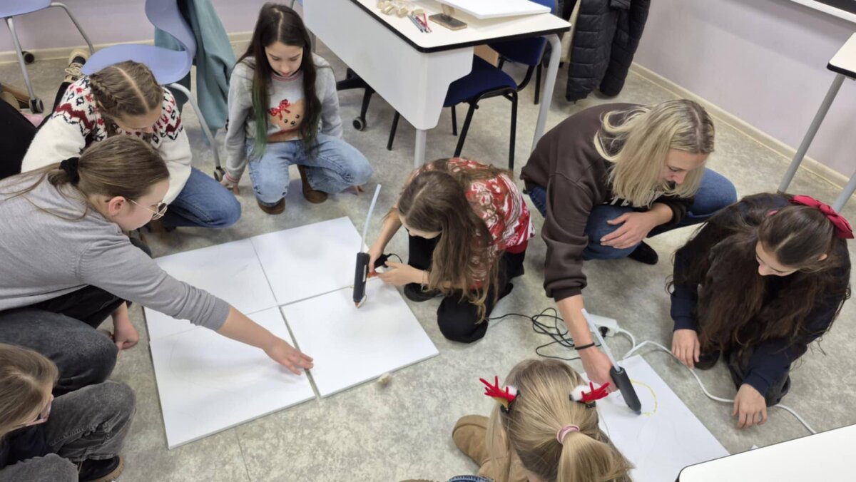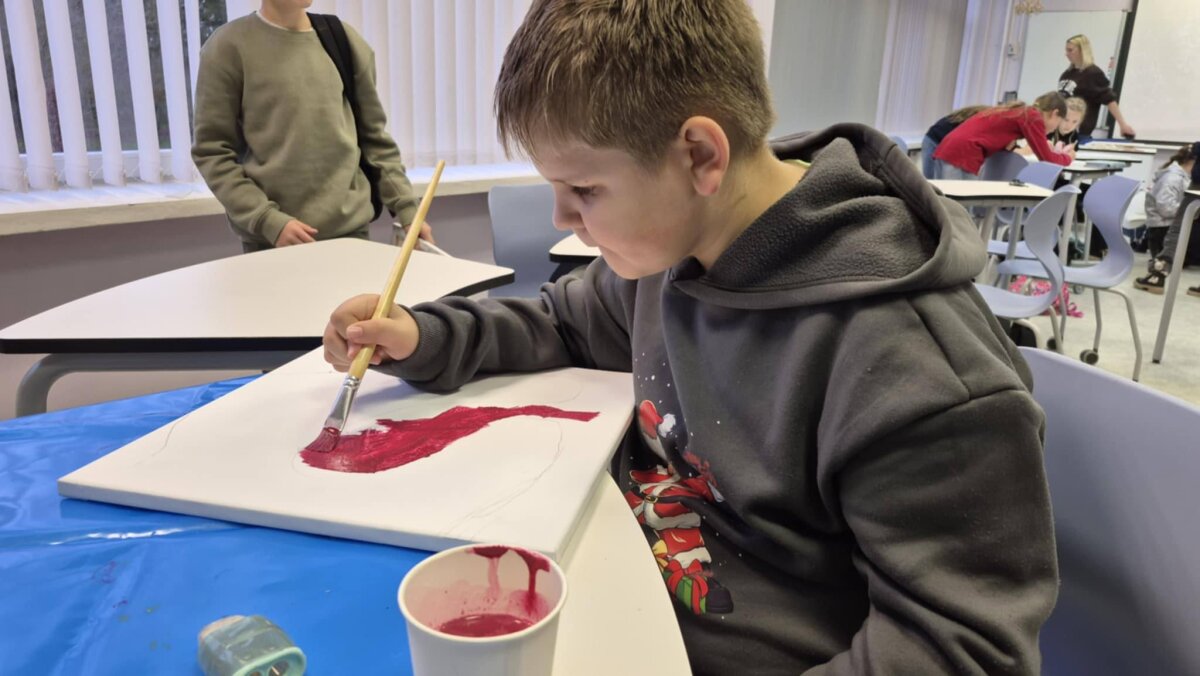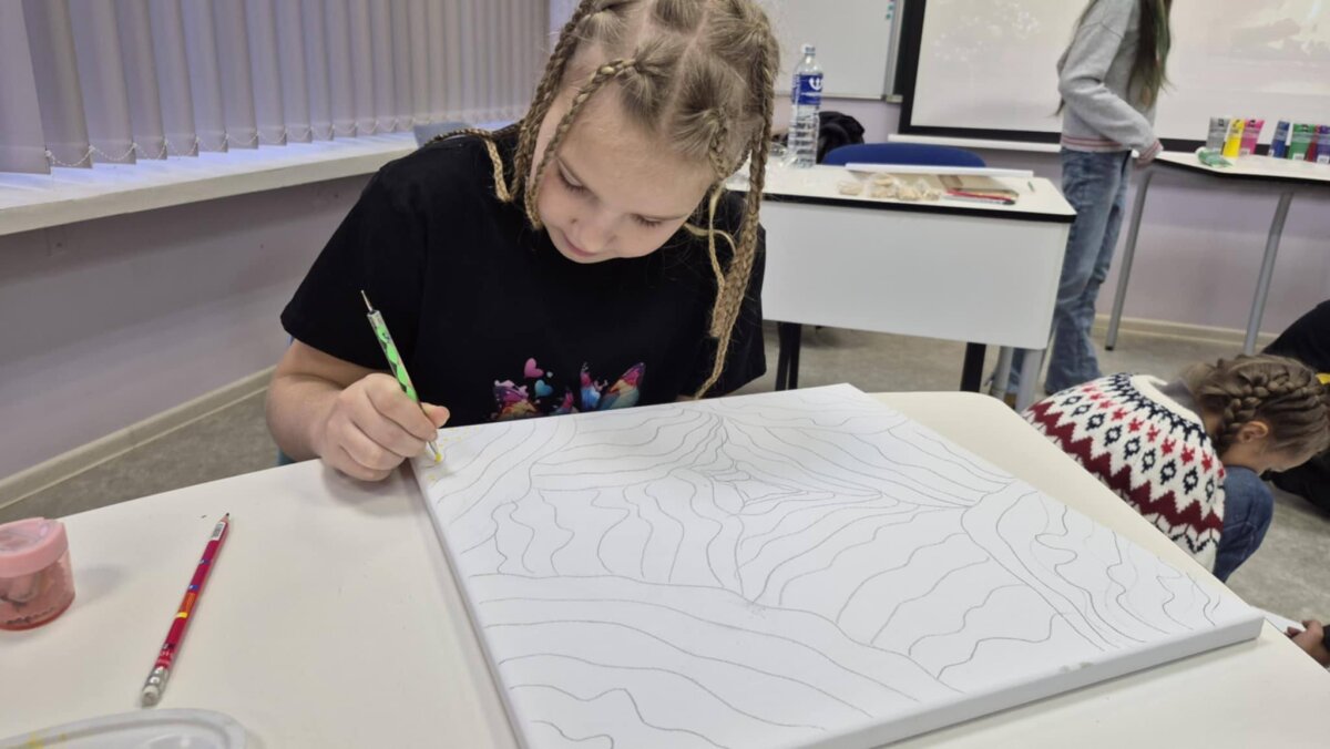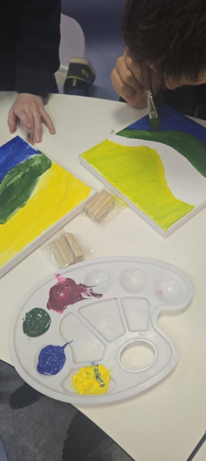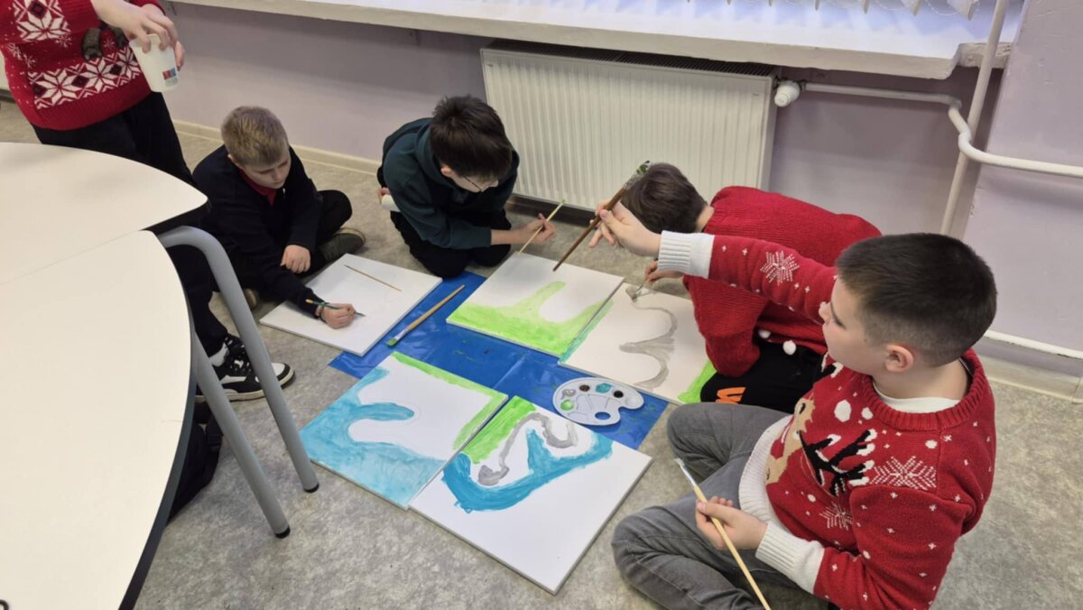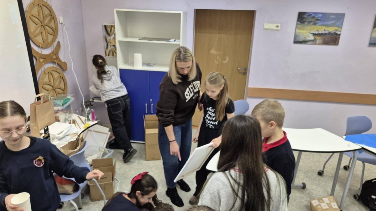 5 kl. Mokiniai naudodami akrilinius dažus, mokiniai kurs savo mažas kompozicijas, remdamiesi Čiurlionio muzikos nuotaika – ramybe, paslaptimi, šviesos ir tamsos žaismu. Taškavimas taps priemone išreikšti judesį, emociją ir ritmą. Jaunieji kūrėjai mokysis, kaip iš smulkių taškų sukurti didelį, gyvą paveikslą.
