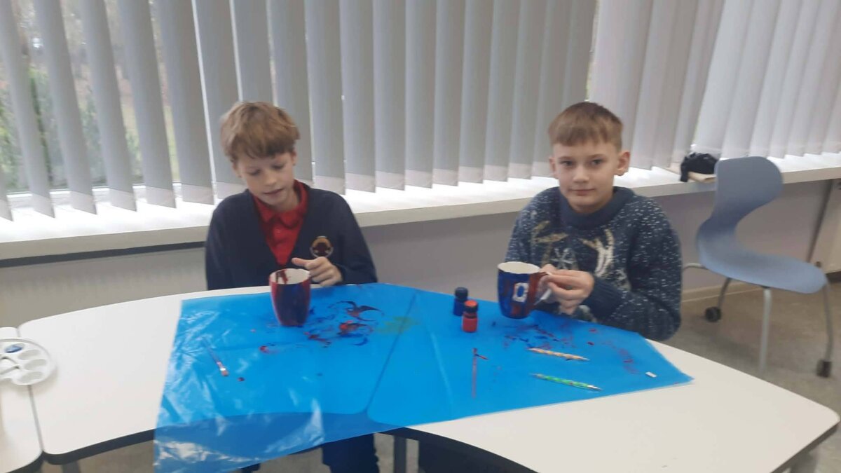 6 kl. mokiniai susipažins su taškavimo (pointilizmo) principu ir išmoks kurti ornamentus, ritmines sekas bei simbolius, įkvėptus Čiurlionio spalvinių sprendimų. Kiekvienas mokinys dekoruos keraminį puodelį, naudodamas specialius dažus, o dekoracija taps jų asmeniniu kūrybos ir fantazijos atspindžiu.